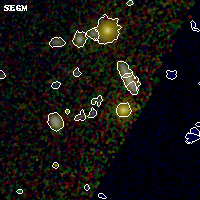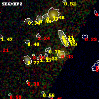 Black segments are analyzed here. Roll mouse over color images to view segments. Best viewed in a wide browser window (1200 pixels or more). Download SED & P(z) plots to view larger versions.