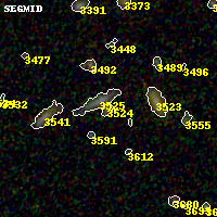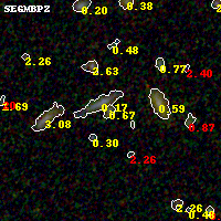 Black segments are analyzed here. Roll mouse over color images to view segments. Best viewed in a wide browser window (1200 pixels or more). Download SED & P(z) plots to view larger versions.