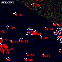 Black segments are analyzed here. Roll mouse over color images to view segments. Best viewed in a wide browser window (1200 pixels or more). Download SED & P(z) plots to view larger versions.
