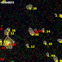 Object #3905   x,y = (1527, 999)   RA, Dec = (02:55:00.528, -58:55:14.88) = (43.75220, -58.92080)   BPZ = 1.739 [0.918--1.782]   type = 9.80 (SB3_B10 - SB2_B10)   stellarity = 0.13   chisq2 = 1.01   ODDS = 0.82   z_cluster = 0.438