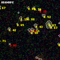 Black segments are analyzed here. Roll mouse over color images to view segments. Best viewed in a wide browser window (1200 pixels or more). Download SED & P(z) plots to view larger versions.