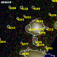Object #4177   x,y = (2476, 781)   RA, Dec = (02:54:53.184, -58:55:27.84) = (43.72160, -58.92440)   BPZ = 0.381 [0.132--3.441]   type = 8.20 (SB1_B10 - SB2_B10)   stellarity = 0.00   chisq2 = 0.75   ODDS = 0.16   z_cluster = 0.438