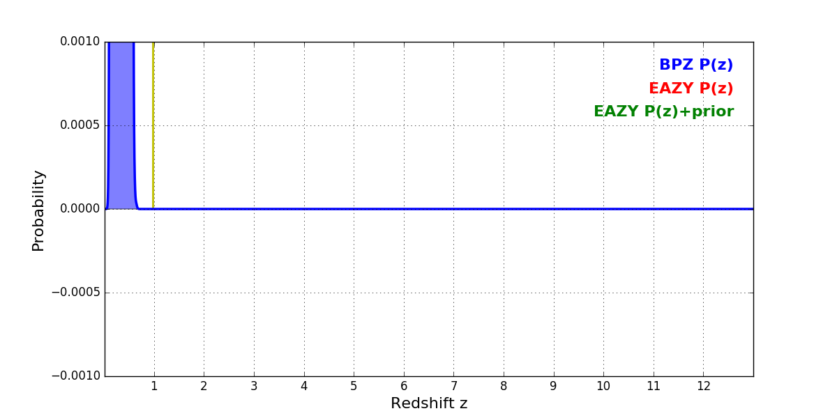 In P(z) plots: Yellow lines mark the cluster redshift z = 0.972,