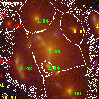 Object #10106 x,y = (4032, 4611) RA, Dec = (06:15:51.720, -57:46:48.36) = (93.96550, -57.78010) BPZ = 1.087 [1.055--1.154] type = 5.80 (Sbc_B10 - ES0_B10) chisq2 = 0.10 ODDS = 0.99 z_cluster = 0.972