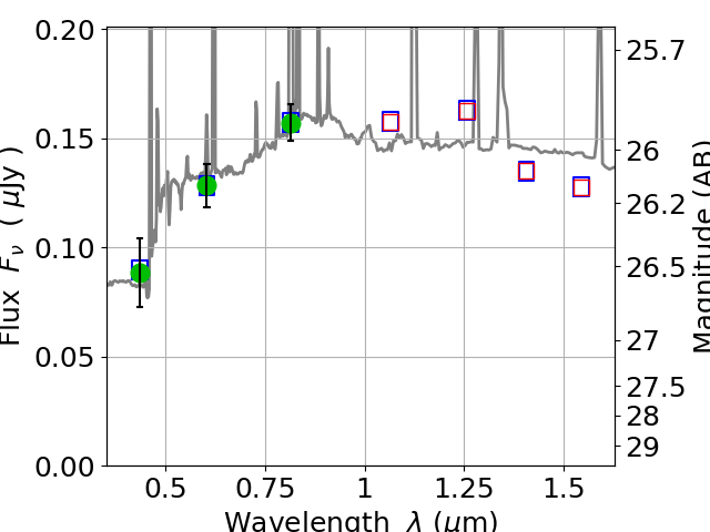 Best viewed in a wide browser window (1200 pixels or more). Download SED & P(z) plots to view larger versions.