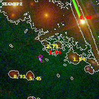 Object #10740 x,y = (4388, 5239) RA, Dec = (06:15:49.056, -57:46:10.56) = (93.95440, -57.76960) BPZ = 0.037 [0.023--2.869] type = 11.00 (SB11_A_0_l) chisq2 = 3.62 ODDS = 0.12 z_cluster = 0.972