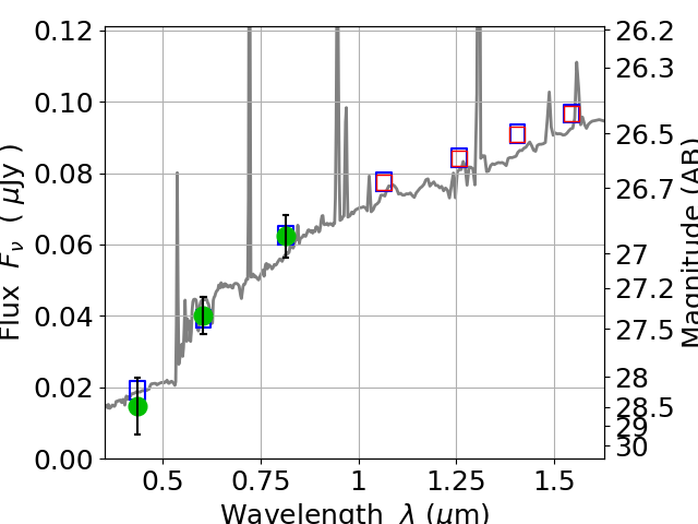 Best viewed in a wide browser window (1200 pixels or more). Download SED & P(z) plots to view larger versions.