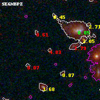 Object #11807 x,y = (3170, 5535) RA, Dec = (06:15:58.176, -57:45:52.92) = (93.99240, -57.76470) BPZ = 4.830 [4.221--5.291] type = 10.00 (SB3_B10) chisq2 = 1.43 ODDS = 0.70 z_cluster = 0.972
