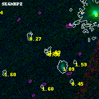 Object #12064 x,y = (2931, 5620) RA, Dec = (06:15:59.976, -57:45:47.88) = (93.99990, -57.76330) BPZ = 1.090 [0.456--2.656] type = 10.70 (SB11_A_0_l - SB3_B10) chisq2 = 0.51 ODDS = 0.11 z_cluster = 0.972