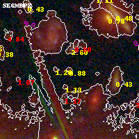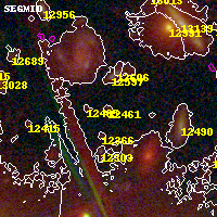 Object #12461 x,y = (3630, 5726) RA, Dec = (06:15:54.720, -57:45:41.40) = (93.97800, -57.76150) BPZ = 0.876 [0.131--4.147] type = 9.90 (SB3_B10 - SB2_B10) chisq2 = 0.28 ODDS = 0.13 z_cluster = 0.972