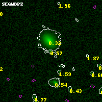 Object #13048 x,y = (1294, 5839) RA, Dec = (06:16:12.240, -57:45:34.56) = (94.05100, -57.75960) BPZ = 0.572 [0.214--4.002] type = 7.90 (SB1_B10 - Scd_B10) chisq2 = 0.00 ODDS = 0.13 z_cluster = 0.972