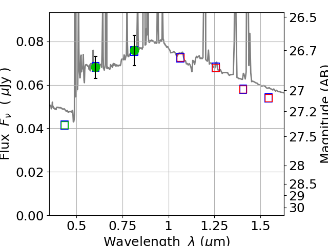 Best viewed in a wide browser window (1200 pixels or more). Download SED & P(z) plots to view larger versions.