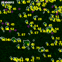 Object #15588 x,y = (3218, 7287) RA, Dec = (06:15:57.816, -57:44:07.80) = (93.99090, -57.73550) BPZ = 0.666 [0.275--4.237] type = 7.80 (SB1_B10 - Scd_B10) chisq2 = 0.01 ODDS = 0.11 z_cluster = 0.972