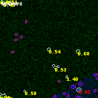 Object #16595 x,y = (4479, 7025) RA, Dec = (06:15:48.360, -57:44:23.64) = (93.95150, -57.73990) BPZ = 0.537 [0.212--4.110] type = 8.00 (SB1_B10) chisq2 = 0.00 ODDS = 0.09 z_cluster = 0.972