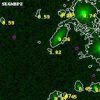 Object #17220 x,y = (5558, 6805) RA, Dec = (06:15:40.272, -57:44:36.60) = (93.91780, -57.74350) BPZ = 1.818 [0.191--3.699] type = 9.20 (SB2_B10 - SB3_B10) chisq2 = 0.00 ODDS = 0.09 z_cluster = 0.972