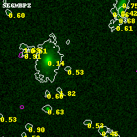 Object #18904 x,y = (6282, 6275) RA, Dec = (06:15:34.848, -57:45:08.64) = (93.89520, -57.75240) BPZ = 0.525 [0.191--4.053] type = 8.60 (SB2_B10 - SB1_B10) chisq2 = 0.00 ODDS = 0.07 z_cluster = 0.972
