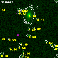 Object #18940 x,y = (6252, 6240) RA, Dec = (06:15:35.064, -57:45:10.44) = (93.89610, -57.75290) BPZ = 0.660 [0.224--4.177] type = 8.50 (SB2_B10 - SB1_B10) chisq2 = 0.00 ODDS = 0.08 z_cluster = 0.972