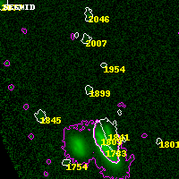 Object #1899 x,y = (1865, 2191) RA, Dec = (06:16:07.992, -57:49:13.44) = (94.03330, -57.82040) BPZ = 0.424 [0.136--3.765] type = 9.90 (SB3_B10 - SB2_B10) chisq2 = 0.00 ODDS = 0.06 z_cluster = 0.972