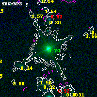 Object #19528 x,y = (3493, 6120) RA, Dec = (06:15:55.752, -57:45:18.00) = (93.98230, -57.75500) BPZ = 0.737 [0.701--0.798] type = 5.00 (ES0_B10) chisq2 = 0.00 ODDS = 0.98 z_cluster = 0.972