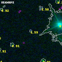 Object #3779 x,y = (3974, 2955) RA, Dec = (06:15:52.152, -57:48:27.72) = (93.96730, -57.80770) BPZ = 1.592 [0.797--2.752] type = 10.40 (SB3_B10 - SB11_A_0_l) chisq2 = 0.00 ODDS = 0.15 z_cluster = 0.972