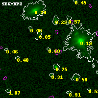 Object #4148 x,y = (6826, 3077) RA, Dec = (06:15:30.744, -57:48:20.52) = (93.87810, -57.80570) BPZ = 0.597 [0.238--4.164] type = 8.10 (SB1_B10 - SB2_B10) chisq2 = 0.00 ODDS = 0.10 z_cluster = 0.972