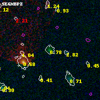 Object #4784 x,y = (4665, 3249) RA, Dec = (06:15:46.968, -57:48:10.08) = (93.94570, -57.80280) BPZ = 0.783 [0.700--1.252] type = 5.10 (ES0_B10 - Sbc_B10) chisq2 = 0.00 ODDS = 0.37 z_cluster = 0.972