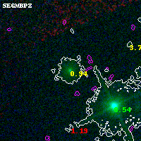 Object #5960 x,y = (4886, 3650) RA, Dec = (06:15:45.312, -57:47:45.96) = (93.93880, -57.79610) BPZ = 0.943 [0.760--1.167] type = 5.10 (ES0_B10 - Sbc_B10) chisq2 = 0.00 ODDS = 0.47 z_cluster = 0.972