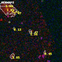 Object #6610 x,y = (5031, 3892) RA, Dec = (06:15:44.208, -57:47:31.56) = (93.93420, -57.79210) BPZ = 1.468 [0.791--2.674] type = 11.00 (SB11_A_0_l) chisq2 = 0.42 ODDS = 0.22 z_cluster = 0.972