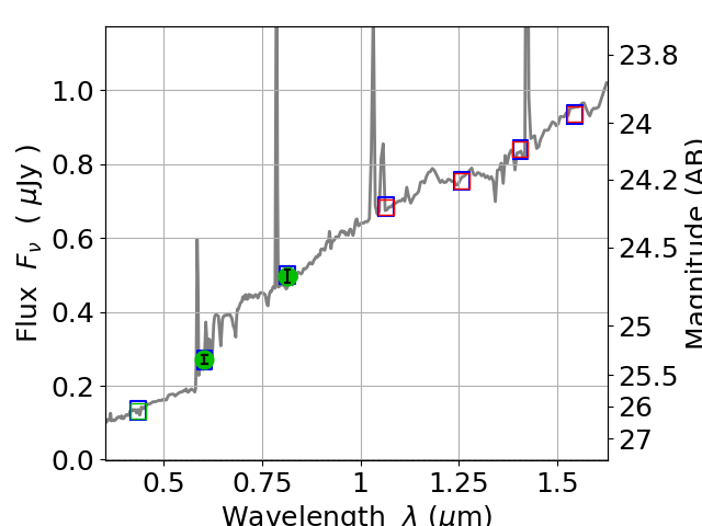 Best viewed in a wide browser window (1200 pixels or more). Download SED & P(z) plots to view larger versions.