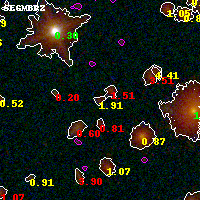 Object #6671 x,y = (3616, 3914) RA, Dec = (06:15:54.840, -57:47:30.12) = (93.97850, -57.79170) BPZ = 1.909 [0.572--2.570] type = 8.80 (SB2_B10 - SB1_B10) chisq2 = 0.70 ODDS = 0.22 z_cluster = 0.972
