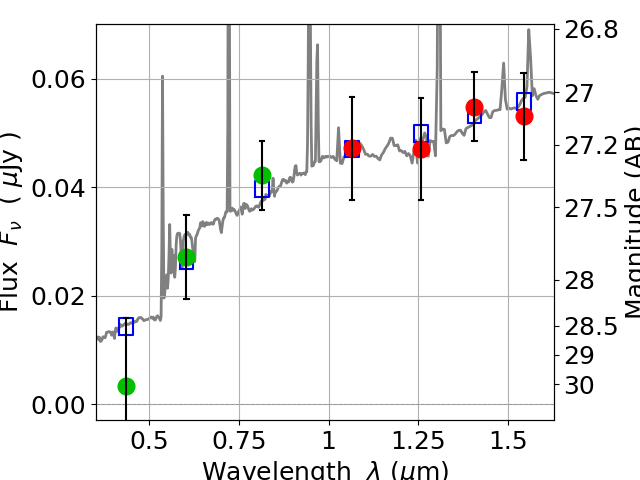 Best viewed in a wide browser window (1200 pixels or more). Download SED & P(z) plots to view larger versions.