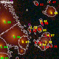 Object #7880 x,y = (4204, 4321) RA, Dec = (06:15:50.424, -57:47:05.64) = (93.96010, -57.78490) BPZ = 1.104 [0.545--1.825] type = 8.70 (SB2_B10 - SB1_B10) chisq2 = 2.07 ODDS = 0.29 z_cluster = 0.972