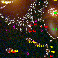 Object #8116 x,y = (4601, 4396) RA, Dec = (06:15:47.448, -57:47:01.32) = (93.94770, -57.78370) BPZ = 1.415 [1.132--2.279] type = 10.10 (SB3_B10 - SB11_A_0_l) chisq2 = 6.31 ODDS = 0.30 z_cluster = 0.972