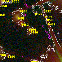 Object #8380 x,y = (2725, 4484) RA, Dec = (06:16:01.512, -57:46:55.92) = (94.00630, -57.78220) BPZ = 0.533 [0.441--0.719] type = 8.00 (SB1_B10) chisq2 = 0.27 ODDS = 0.46 z_cluster = 0.972