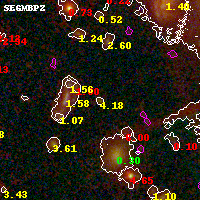 Object #8700 x,y = (2665, 4584) RA, Dec = (06:16:01.968, -57:46:49.80) = (94.00820, -57.78050) BPZ = 4.185 [3.940--4.338] type = 11.00 (SB11_A_0_l) chisq2 = 0.47 ODDS = 0.94 z_cluster = 0.972