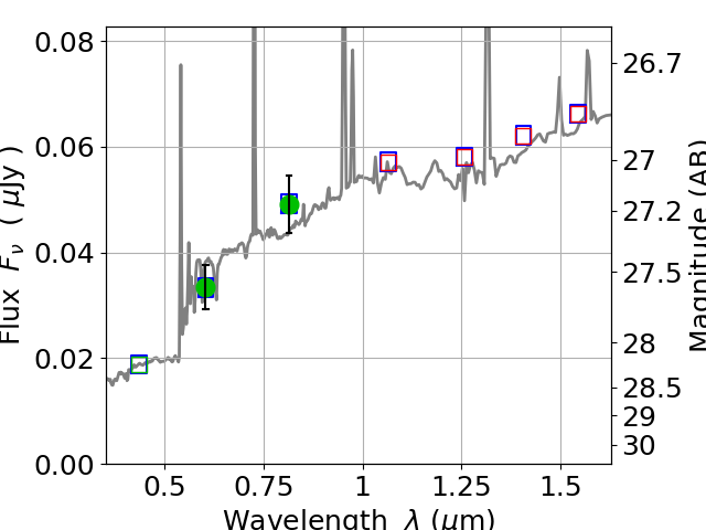 Best viewed in a wide browser window (1200 pixels or more). Download SED & P(z) plots to view larger versions.