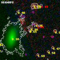 Object #9314 x,y = (2464, 4780) RA, Dec = (06:16:03.480, -57:46:38.28) = (94.01450, -57.77730) BPZ = 0.653 [0.151--1.727] type = 9.90 (SB3_B10 - SB2_B10) chisq2 = 0.38 ODDS = 0.20 z_cluster = 0.972