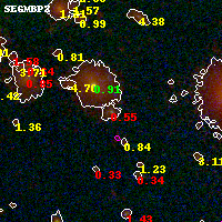 Object #9821 x,y = (4393, 4952) RA, Dec = (06:15:49.008, -57:46:27.84) = (93.95420, -57.77440) BPZ = 0.549 [0.396--0.725] type = 9.70 (SB3_B10 - SB2_B10) chisq2 = 1.90 ODDS = 0.47 z_cluster = 0.972