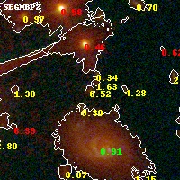 Object #1118 x,y = (3043, 4626) RA, Dec = (06:15:59.136, -57:46:47.64) = (93.99640, -57.77990) BPZ = 0.524 [0.205--4.548] type = 9.90 (SB3_B10 - SB2_B10) chisq2 = 0.99 ODDS = 0.28 z_cluster = 0.972