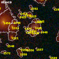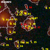 Object #1444 x,y = (4238, 4274) RA, Dec = (06:15:50.184, -57:47:08.52) = (93.95910, -57.78570) BPZ = 1.453 [1.105--2.423] type = 10.00 (SB3_B10) chisq2 = 0.12 ODDS = 0.42 z_cluster = 0.972