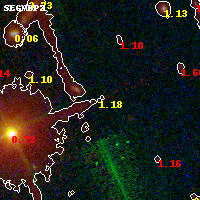 Object #1686 x,y = (2974, 4085) RA, Dec = (06:15:59.664, -57:47:20.04) = (93.99860, -57.78890) BPZ = 1.175 [0.309--5.008] type = 10.40 (SB3_B10 - SB11_A_0_l) chisq2 = 0.22 ODDS = 0.06 z_cluster = 0.972