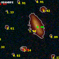 Object #216 x,y = (4674, 3671) RA, Dec = (06:15:46.896, -57:47:44.88) = (93.94540, -57.79580) BPZ = 1.499 [0.239--3.880] type = 10.00 (SB3_B10) chisq2 = 0.26 ODDS = 0.09 z_cluster = 0.972