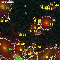 Object #428 x,y = (3869, 5175) RA, Dec = (06:15:52.944, -57:46:14.52) = (93.97060, -57.77070) BPZ = 0.913 [0.305--5.048] type = 7.60 (SB1_B10 - Scd_B10) chisq2 = 0.37 ODDS = 0.20 z_cluster = 0.972