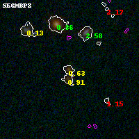 Black segments are analyzed here. Roll mouse over color images to view segments. Best viewed in a wide browser window (1200 pixels or more). Download SED & P(z) plots to view larger versions.