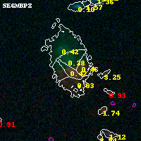 Black segments are analyzed here. Roll mouse over color images to view segments. Best viewed in a wide browser window (1200 pixels or more). Download SED & P(z) plots to view larger versions.