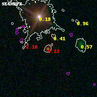 Black segments are analyzed here. Roll mouse over color images to view segments. Best viewed in a wide browser window (1200 pixels or more). Download SED & P(z) plots to view larger versions.