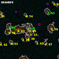 Black segments are analyzed here. Roll mouse over color images to view segments. Best viewed in a wide browser window (1200 pixels or more). Download SED & P(z) plots to view larger versions.