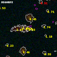 Black segments are analyzed here. Roll mouse over color images to view segments. Best viewed in a wide browser window (1200 pixels or more). Download SED & P(z) plots to view larger versions.