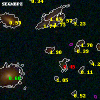 Black segments are analyzed here. Roll mouse over color images to view segments. Best viewed in a wide browser window (1200 pixels or more). Download SED & P(z) plots to view larger versions.