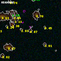 Black segments are analyzed here. Roll mouse over color images to view segments. Best viewed in a wide browser window (1200 pixels or more). Download SED & P(z) plots to view larger versions.
